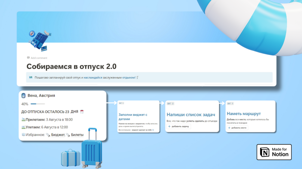 🏖️ Запланируй свой отпуск с улучшенным шаблоном "Планирование отпуска 2.0" в Notion!
