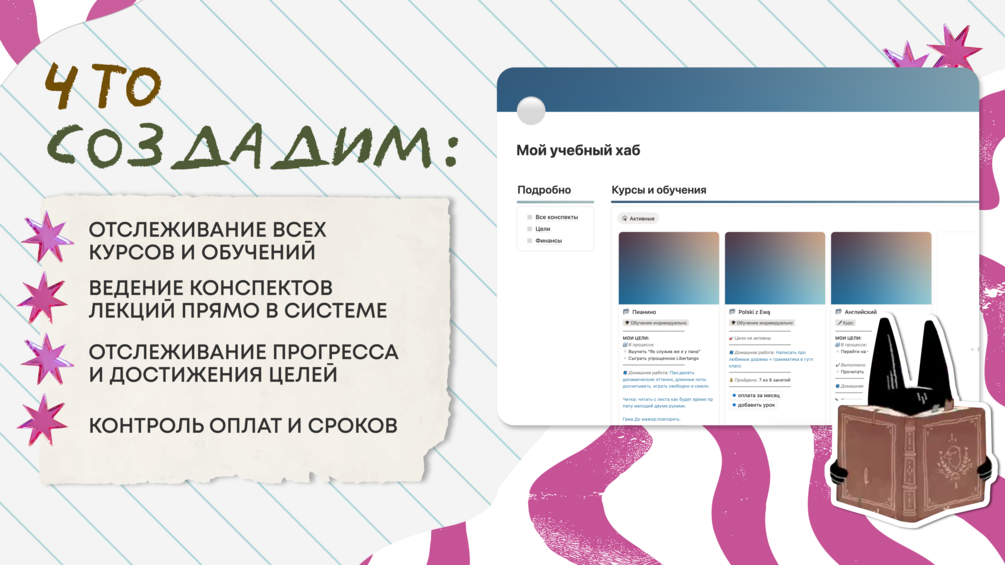 Здесь мы шаг за шагом собираем личный учебный хаб в Notion, который помогает: