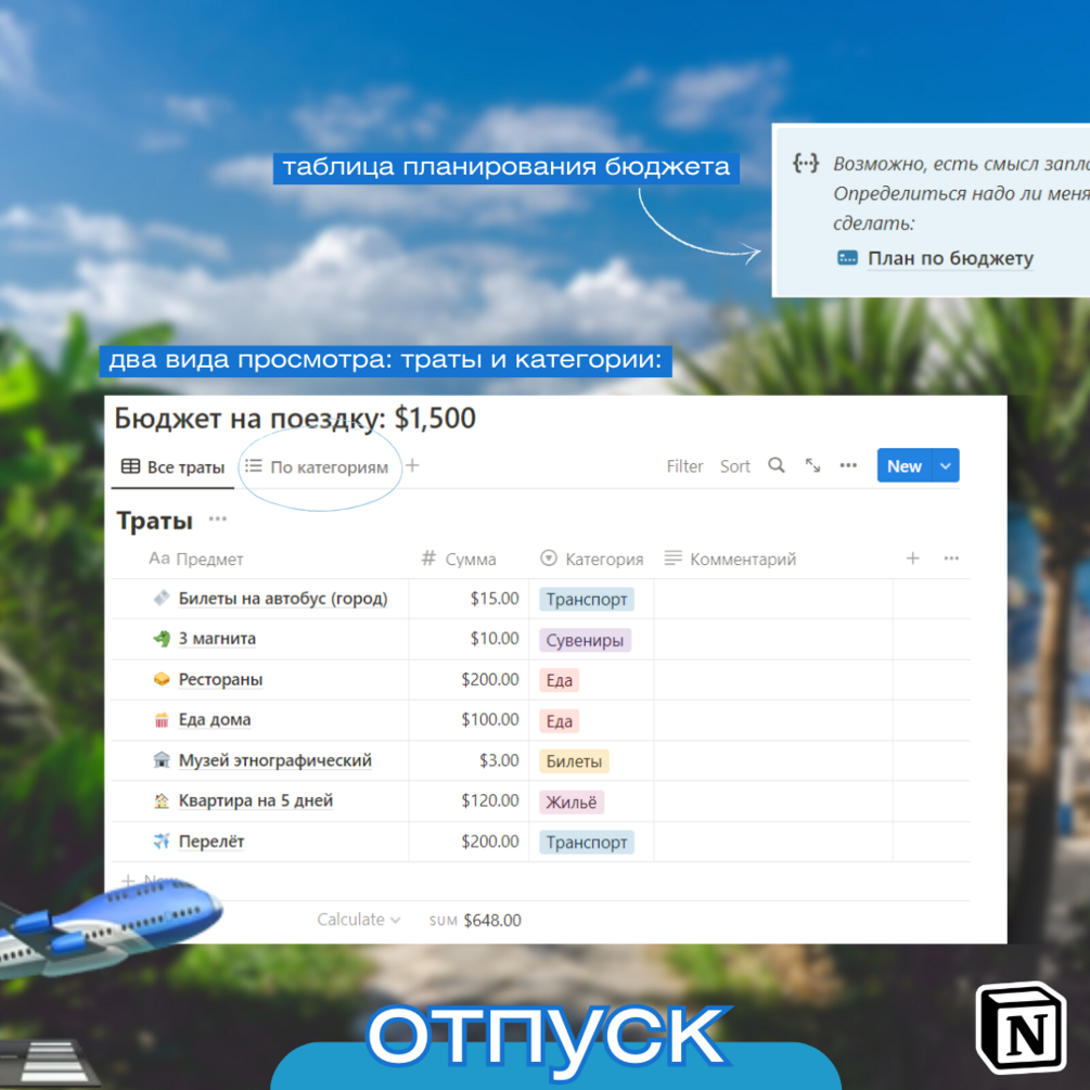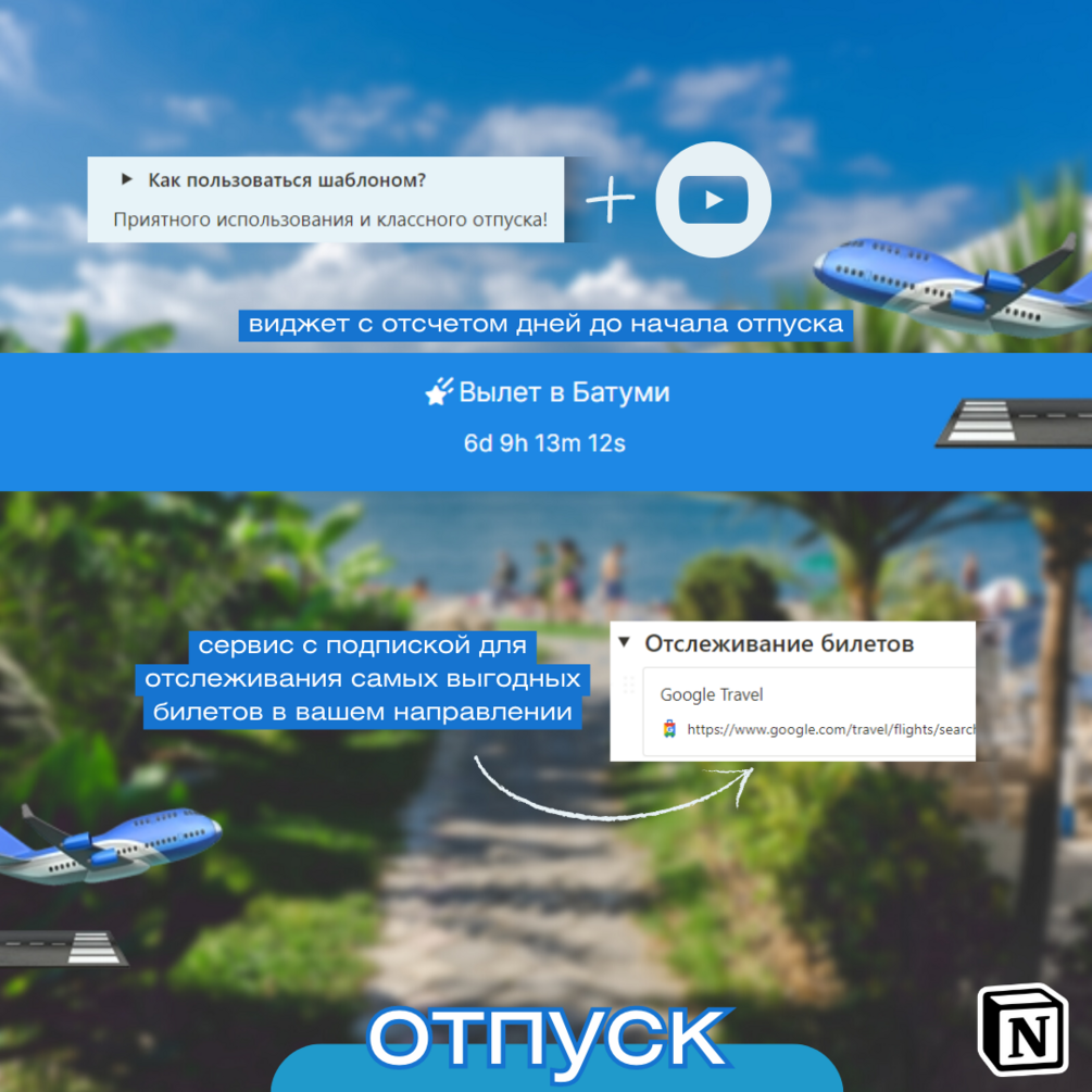 🏝️ Прокачай свой отпуск с умным шаблоном в Notion! 🏝️
