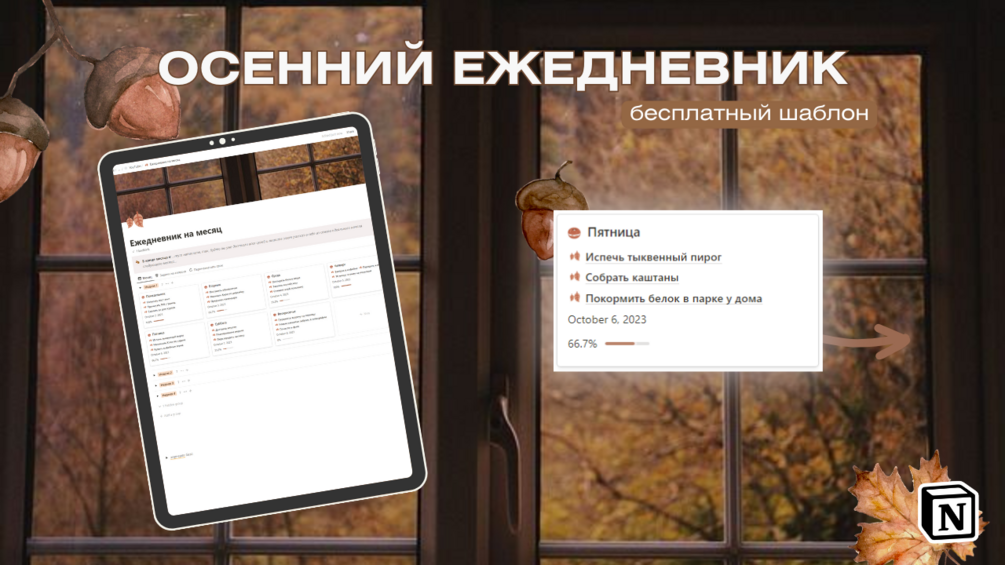 С "Осенним ежедневником" в Notion, вы сможете создать осенний месяц, полный продуктивности и достижений. Настройте его под свои потребности и наслаждайтесь улучшением своей жизни на протяжении всей осени 🍂📅.